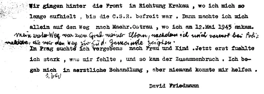 In der Rückschau berichtet David Friedmann im Lebenslauf über die Zeit im Ghetto bis zu seiner Befreiung wie folgt: