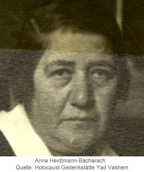 Am 12. April 1901 hat Anna Bacharach den Kaufmann Sali Mosbach (geb. 23.5.1875 in Altena) geheiratet. Diese Ehe wurde am 14. April 1904 geschieden. Am 6. August 1913 heiratet sie den Oberpostassistenten Ludwig Heidtmann (geb. 17.9.1873 in Deutsch Avricourt), einen evangelischen Christen. Mit ihm ist sie zwar über 20 Jahre verheiratet, allerdings ist zu vermuten, dass sie sich schon lange vorher getrennt haben. Die Ehe wird am 3. November 1933 geschieden. Dieses Datum ist möglicherweise kein Zufall, weil es nach der Machtübernahme der Nazis für einen christlichen Beamten problematisch wurde, mit einer Jüdin verheiratet zu sein. Beide Ehen waren kinderlos.
