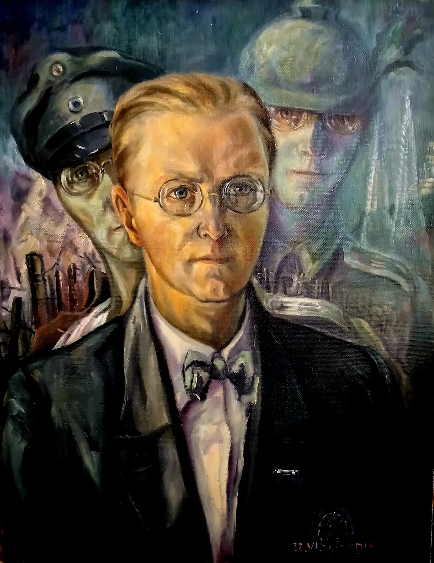 Mit seinem Titel 22.VI.1915, der im Gemälde unten rechts deutlich sichtbar vermerkt ist, erinnert dieses Werk an Limmers Verwundung im Ersten Weltkrieg am 22. Juni 1915 in den Vogesen. Es stellt Limmer einmal als Frontsoldat mit Pickelhaube dar, als Mitarbeiter im Generalkommando mit Schirmmütze und als Zivilist mit Anzug und Fliege. Auf der rechten Seite des Bildes ist an der Anzugjacke neben dem Revers das Verwundetenabzeichen in Schwarz mit Stahlhelm und gekreuzten Schwertern zu erkennen. Hinten links ist ein Stacheldrahtverhau zu sehen, der sich üblicherweise vor den Schützengräben befand. Nach rehts geht der Stacheldrahtverhau in einen Friedhof mit weissen Grabkreuzen über. Und ganz im Hintergrund sind rechts die Türme des Regensburger Doms zu sehen.