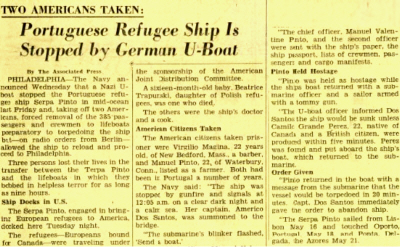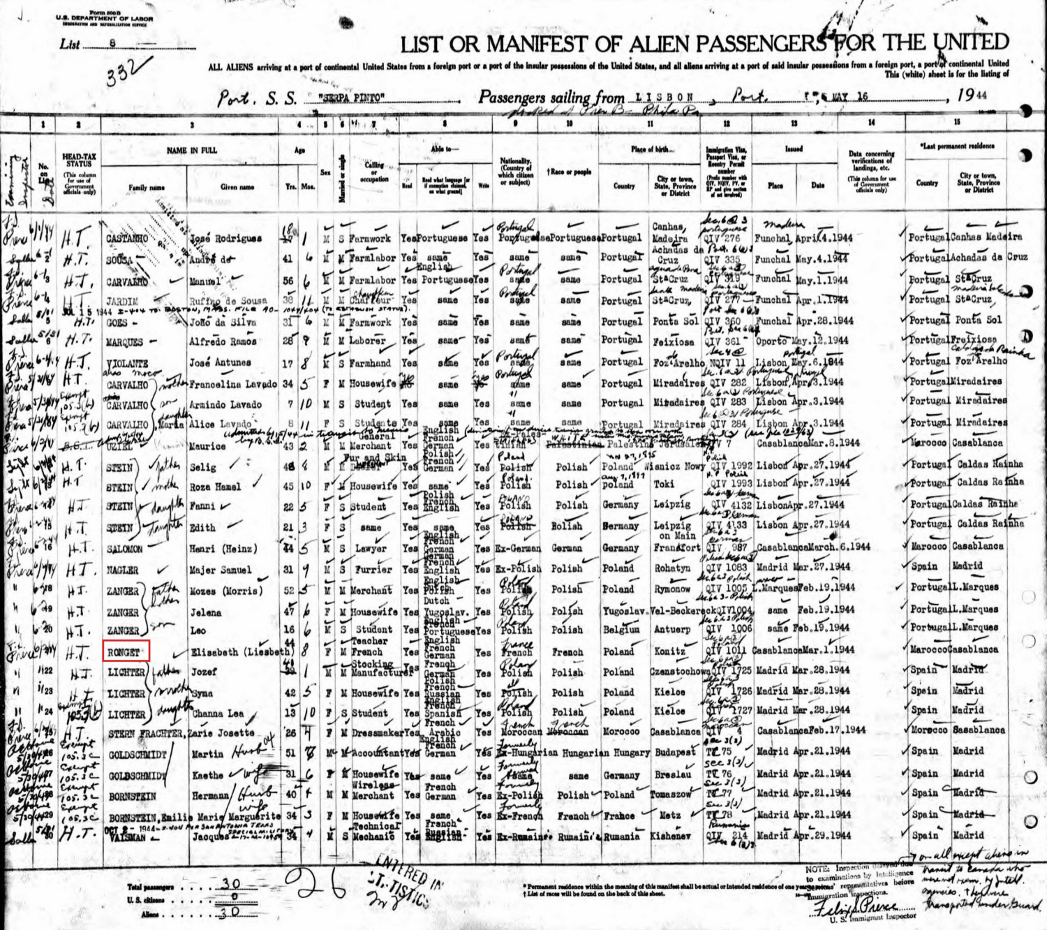 Die Fahrt vom 16.05.1944 ab Lissabon, war die Reise, bei der das Schiff in der Nähe der Bermudas von dem deutschen U-Boot U-541 gestoppt wurde und die 385 Passagiere in die Rettungsboote umsteigen mussten. Der deutsche U-Boot-Kommandant Kurt Petersen wollte das Passagierschiff torpedieren und wartete auf die Erlaubnis des BdU (Befehlshaber der U-Boote), das Schiff zu versenken. Nach neun Stunden traf die Nachricht ein, dass das Schiff nicht versenkt werden darf. Solange trieben die Rettungsboote auf See. Es dauerte weitere sechs Stunden, bis die Boote eingesammelt und die Passagiere wieder an Bord waren. Bei dieser Aktion kamen zwei Besatzungsmitglieder und ein Baby ums Leben. Die Teilnahme von Elisabeth an dieser Fahrt ist mit Eintrag ihres Namens in der Passagierliste belegt. Ihre Staatsbürgerschaft wird dort mit "french" angegeben und ihr Beruf mit "Teacher french".